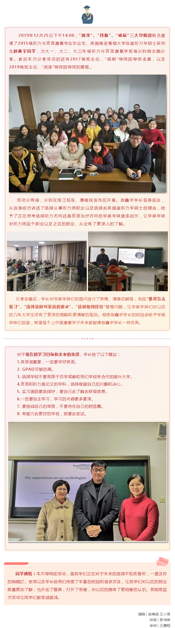 “学长来支招儿”——听力与言语康复学专业主题分享会