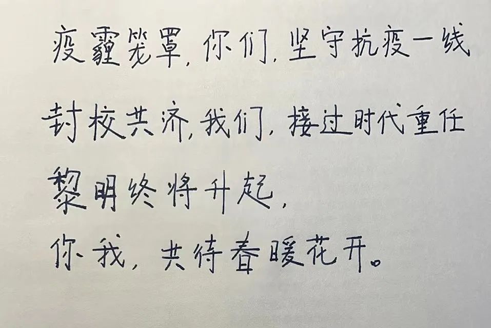 秦真侠老师说,“自己被同学们的志愿经历感动,感谢志愿者同学向大家传递的正能量。但也同样强调,不论疫情多么严重,我们都不能忘记自己的员工身份,封控在家或者封控在校这段静下来的时光,正是提升自己的最佳时机”。