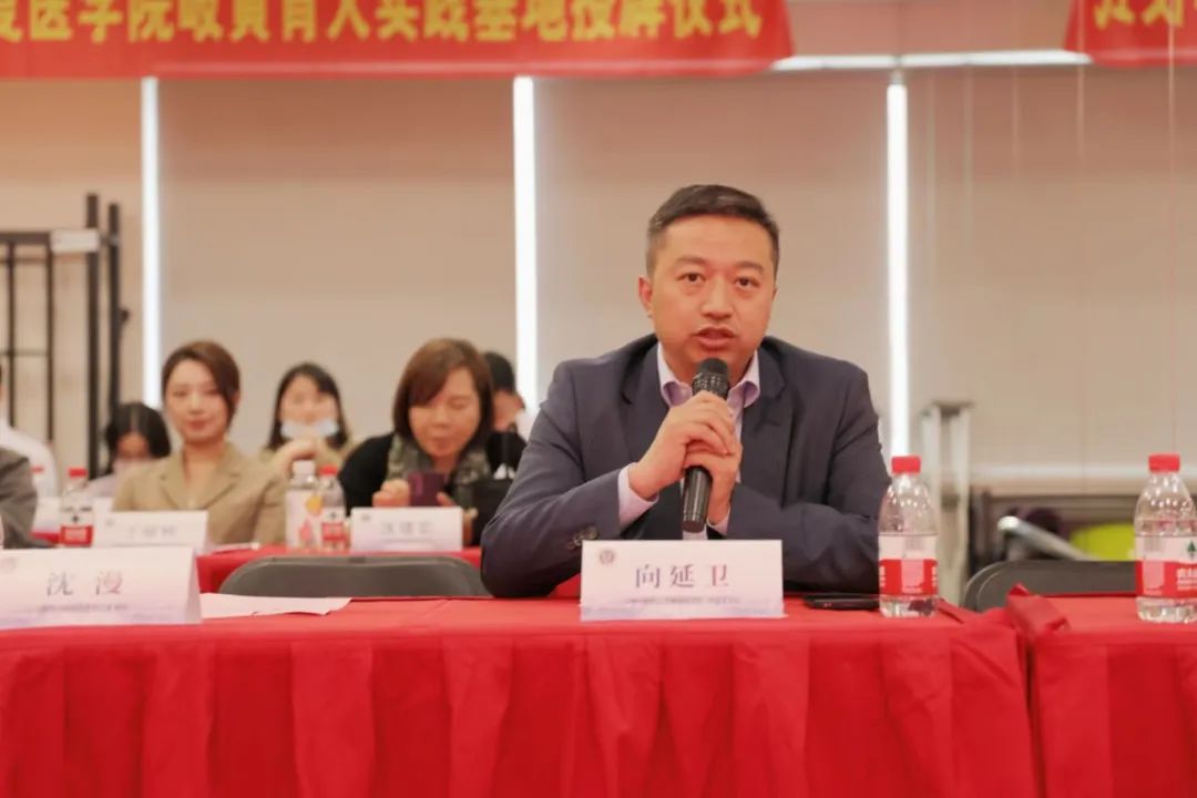 会议伊始由向延卫致欢迎辞,他首先对各位参会领导、嘉宾和专家的到来表示欢迎和感谢。向延卫表示,公司一直非常重视老员工职业生涯发展教育校外实践基地建设,公司将继续推进岐黄育人实践基地内涵建设,围绕“双一流”建设,着眼立德树人根本任务,推动院企合作共赢的基础不断夯实、院企育人的效能不断提升、基地科学管理水平不断提高,让基地的品牌示范引领作用进一步显现。