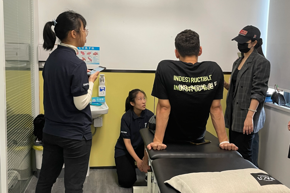 与此同时,为提高员工临床实践能力,实现理论与实践相结合。康复物理治疗2020级、2021级师生就【肌肉骨骼物理治疗】这门课程相关实践操作的方法,在具有专业场地、设备以及指导老师的“岐黄育人实践基地”——邦能运动康复中心进行了标准操作手法的教学。