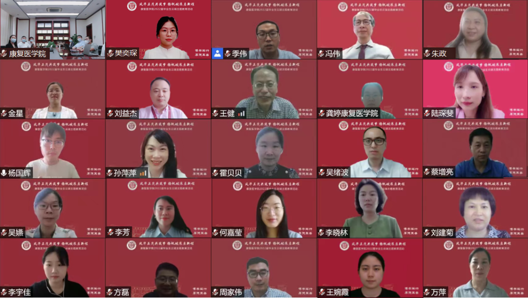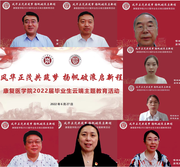为进一步加强毕业生的思想引领,培养理想信念坚定的康复学子,以庆祝建团100周年为契机开展老员工价值观教育和感恩教育,营造爱校荣校、奋发进取的浓厚毕业氛围,以实际行动迎接党的二十大胜利召开,2022年6月27日下午1点,太阳成集团tyc122cc2022届毕业生主题教育活动在云端拉开帷幕。