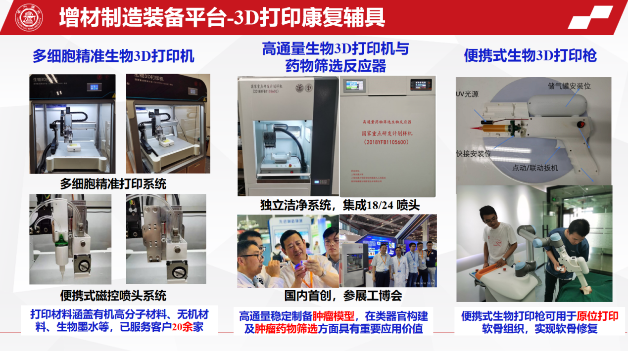 3D打印个性化康复辅具由于完美贴合了不同患者的特定身体特征,能够实现最佳化的力学平衡。3D打印技术不仅可以为患者提供精准化治疗和个体化方案,还适用于批量快速生产,具有广阔的临床应用前景。此外,3D平台自主研发兼容多相态生物墨水、能够完成单细胞或多种细胞的高通量、集成化打印的高通量3D打印机。高通量筛选技术通过中药与靶点之间相互作用达到筛选药效成分的目的,根据分子间相互作用的原理建立筛选模型,从而筛选出与特定靶点特异性结合的活性成分。因此3D打印与中医药相结合,研发先进生物3D打印多功能材料及设备,创新制备相关的产品及服务。