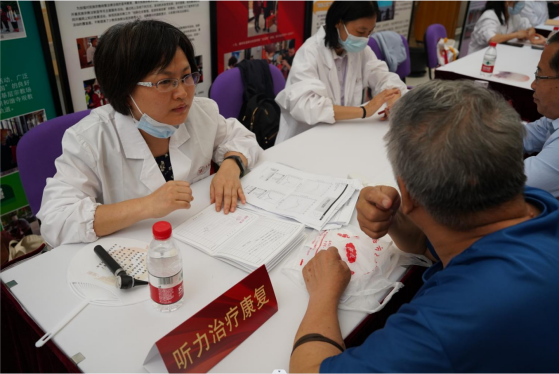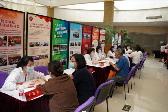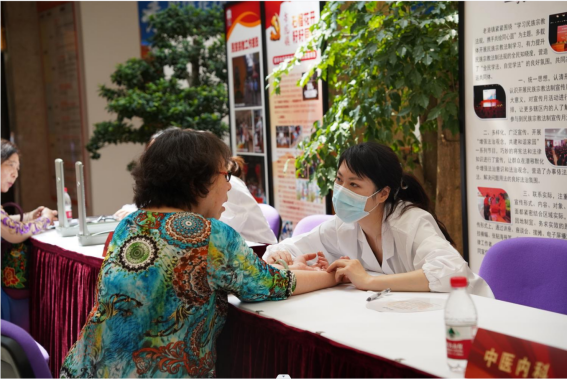 在太阳成集团tyc122cc师生的共同组织下,社区文化活动中心当天专设区域举行了中医义诊活动。义诊开设了中医科、针灸推拿科、中医内科、康复科、皮肤科、听力康复治疗等窗口,附属龙华医院刘国萍医生、附属曙光医院崔花顺医生、附属岳阳中西医结合医院孙璐医生、研究生院宋秀玲医生等专家和公司刘建菊、孙萍萍、柏怡文等老师共同开展义诊,公司研究生代表参与了活动开展和秩序维护工作,为花木街道的居民们提供健康服务。