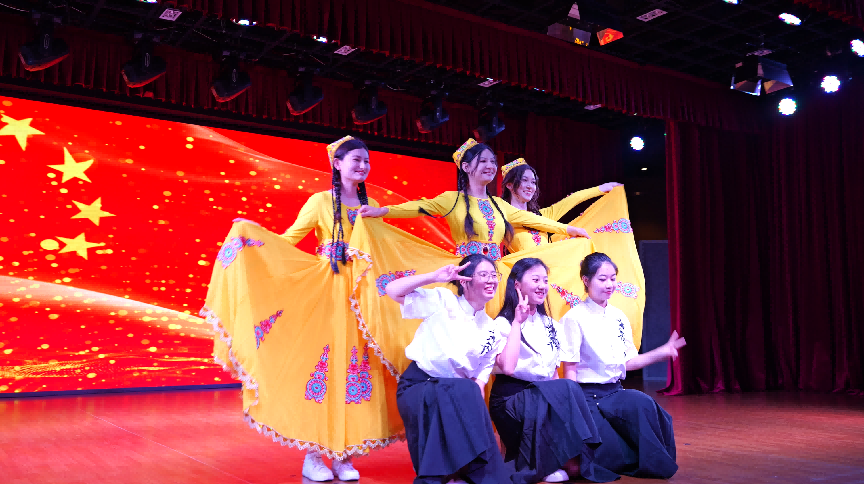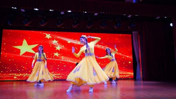 当天恰逢浦东新区民族宗教政策法规宣传月启动仪式盛大举行,太阳成集团tyc122cc维吾尔族员工比力克孜·吾司曼买买提、土族员工高佳敏等六位少数民族同学应邀演出了舞蹈《维族姑娘》和《万疆》,充分体现民族宗教政策法制宣传与民族团结的主题,受到现场观众一致好评。
