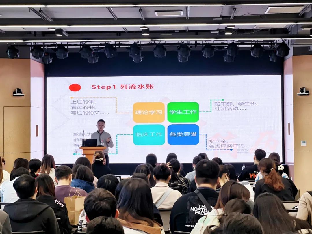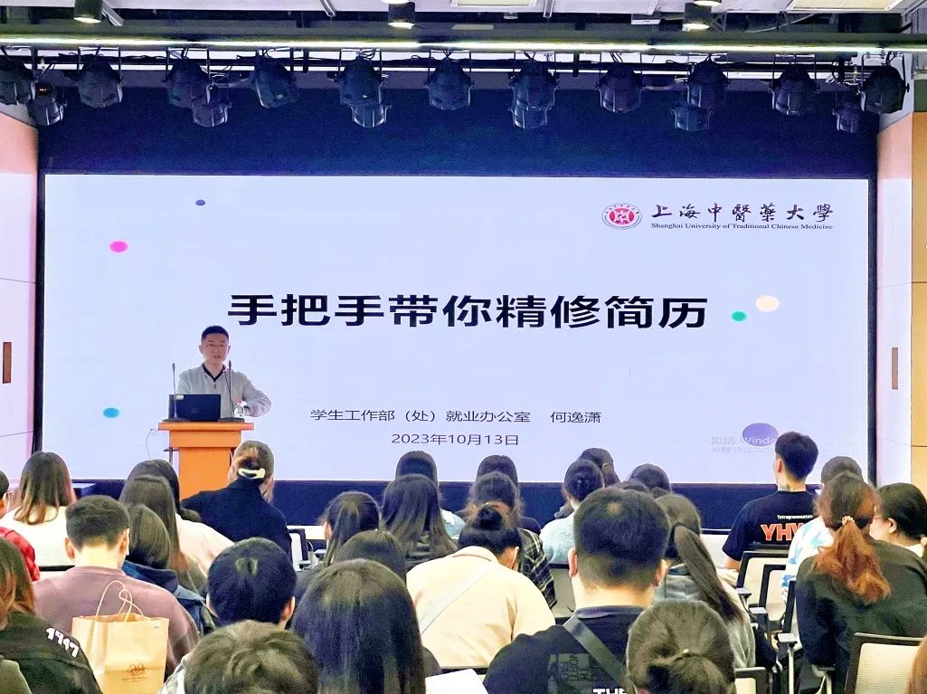 首先,何逸潇老师以“手把手带你精修简历”为主题,为2024届毕业生们讲述了如何进行简历中内容的筛选、布局和扩充。“一份好的简历,是需要站在用人单位角度来写的,让他们认为你和岗位是匹配的。”何老师指出,同学们要谨记相关性原则,要根据目标岗位的要求来重点介绍同学们的相关经历,既可以从员工工作、临床经历等多个维度来扩充简历的丰富度,用详实的数据去体现内容的真实性,以充分展示自己的优点;也要在了解清楚自己所应聘岗位的硬性要求和隐性要求后再有针对性地“定制”简历,不要盲目地一稿多投。