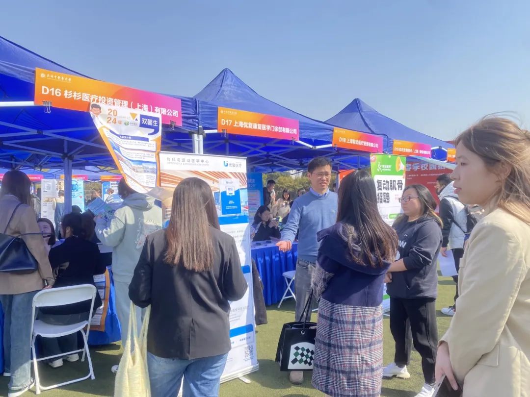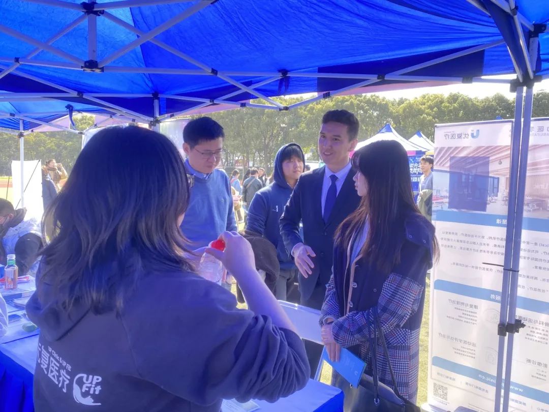 招聘会现场气氛热烈,公司两名应届毕业生李明芮、陆凌玮在公司领导和公司领导的现场见证下获得校级岐黄育人实践基地上海申养康复医院发放的录用offer。