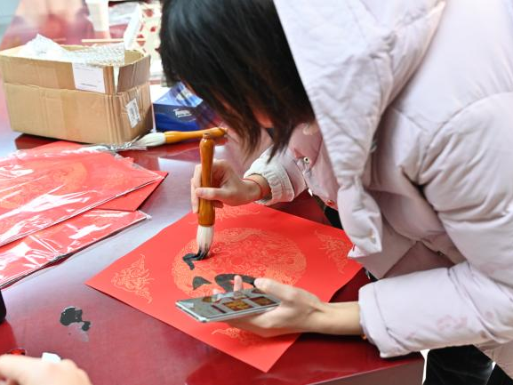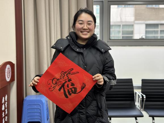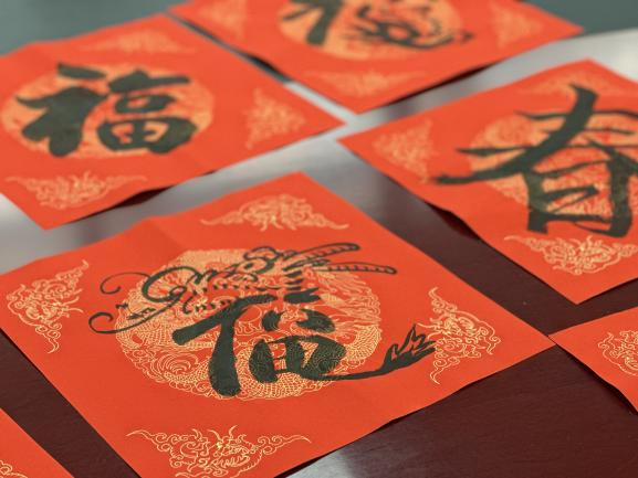 笔墨迎新年,春联送福至”,活动伊始,书法爱好者们现场挥毫泼墨,为大家展示了对联的书写技巧。同学们跃跃欲试,纷纷写下自己的祝福与期许。一个个生动可爱的“福”跃然纸上,现场弥漫着淡淡的墨香和欢声笑语,同学们沉浸在对传统文化的热爱与追求中,深刻地感受到中华文化的博大精深。