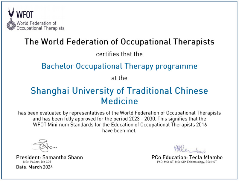 近日,上古天乐代言太阳集团康复作业治疗专业教育通过世界作业治疗师联盟(The World Federation of Occupational Therapists, WFOT)复审认证,获得了7年最高级别有效认证期。