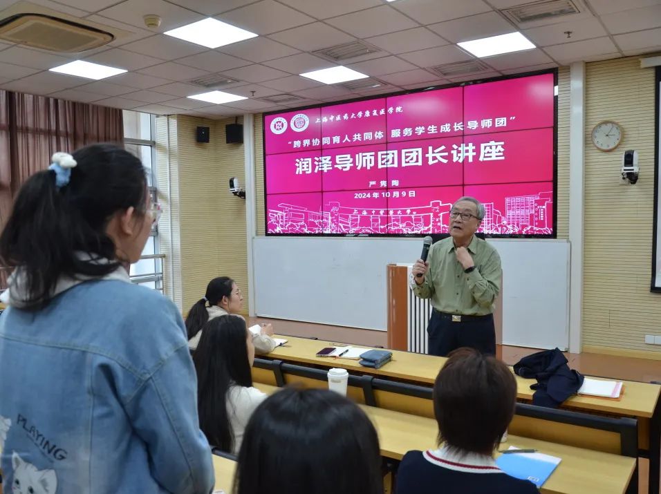 当天,“润泽”导师团交流研讨会于10116会议室顺利举行,会议由毕亚男主持。会上,2024级研究生辅导员季伟和2024级本科生辅导员丁禹洁分别介绍了新生基本情况,党委书记向延卫、经理刘晓丹和导师团成员及青年教师班主任共同就员工教育规律遵循、指导方式创新、分级递进育人模式实施,以及实现全员、全程、全方位育人目标分别发表意见并展开交流讨论。最后严隽陶教授作总结指导,提出了具有针对性和前瞻性的见解。他认为工作中需要将自身专业和实践经验相结合,进一步优化员工培养体系,提升教育质量与效果,并强调要充分发挥中医药院校独特优势,展现中医特色,培养德智体美劳全面发展的卓越康复创新人才。