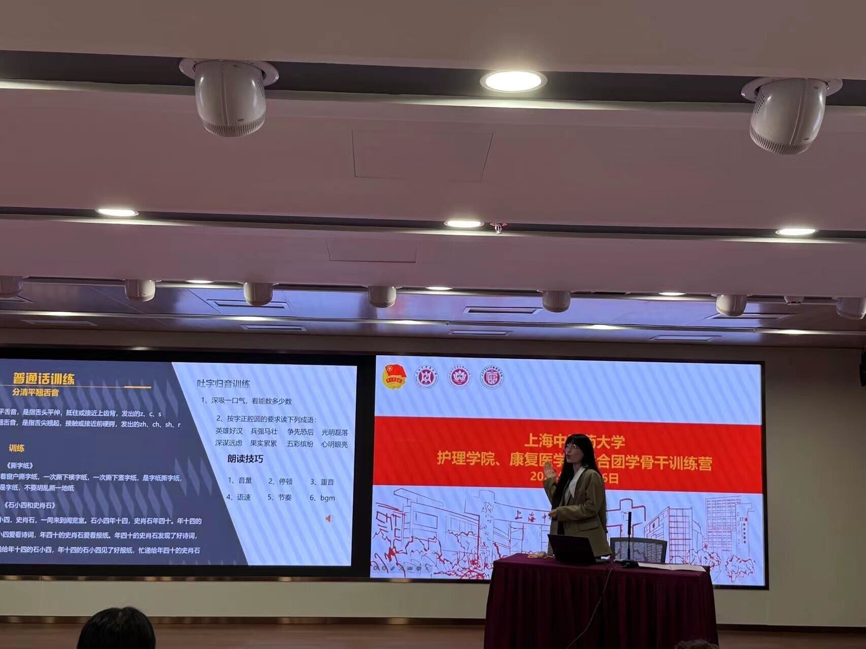 张欣悦同学作为护理公司20级护理本科班员工,现于本校护理公司就读硕士。她以“演讲技巧的艺术与科学”为题,带领训练营的同学学习演讲技巧。她强调演讲需要自信,接着通过绕口令与同学展开互动。同时,她也强调了在演讲中背景音乐的重要性,让同学们在轻松活跃的氛围中收获颇丰。