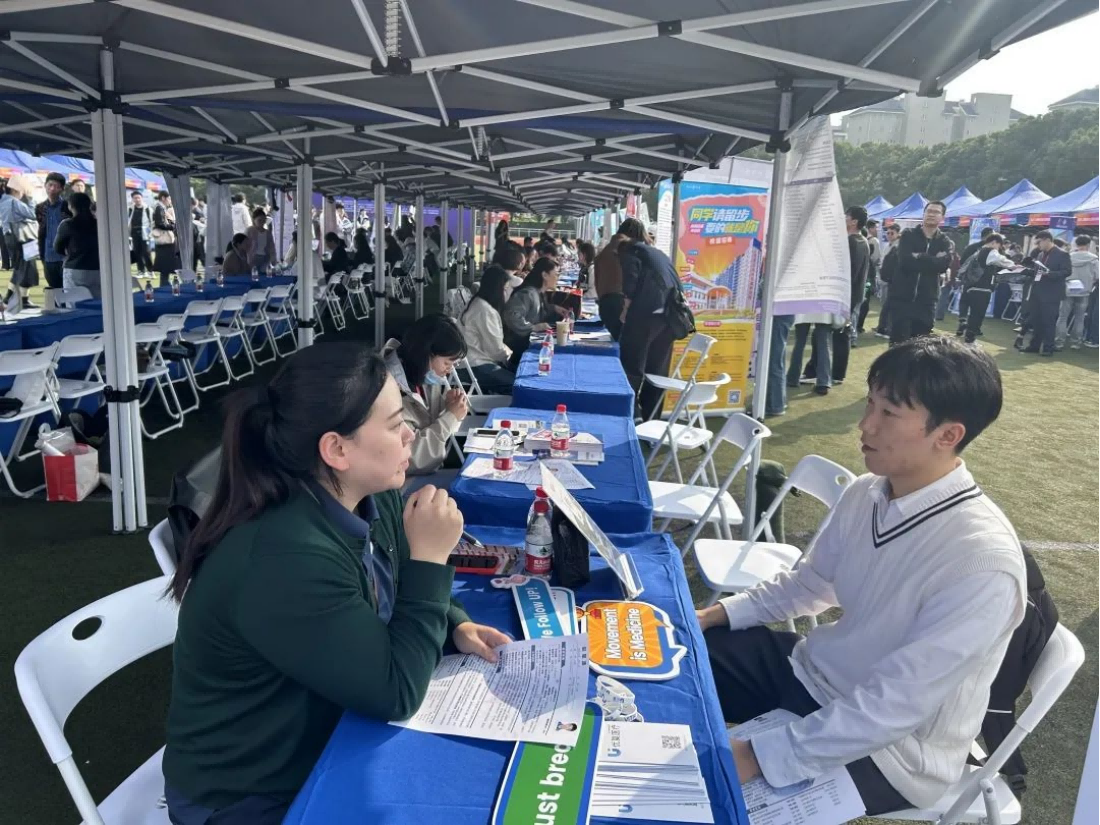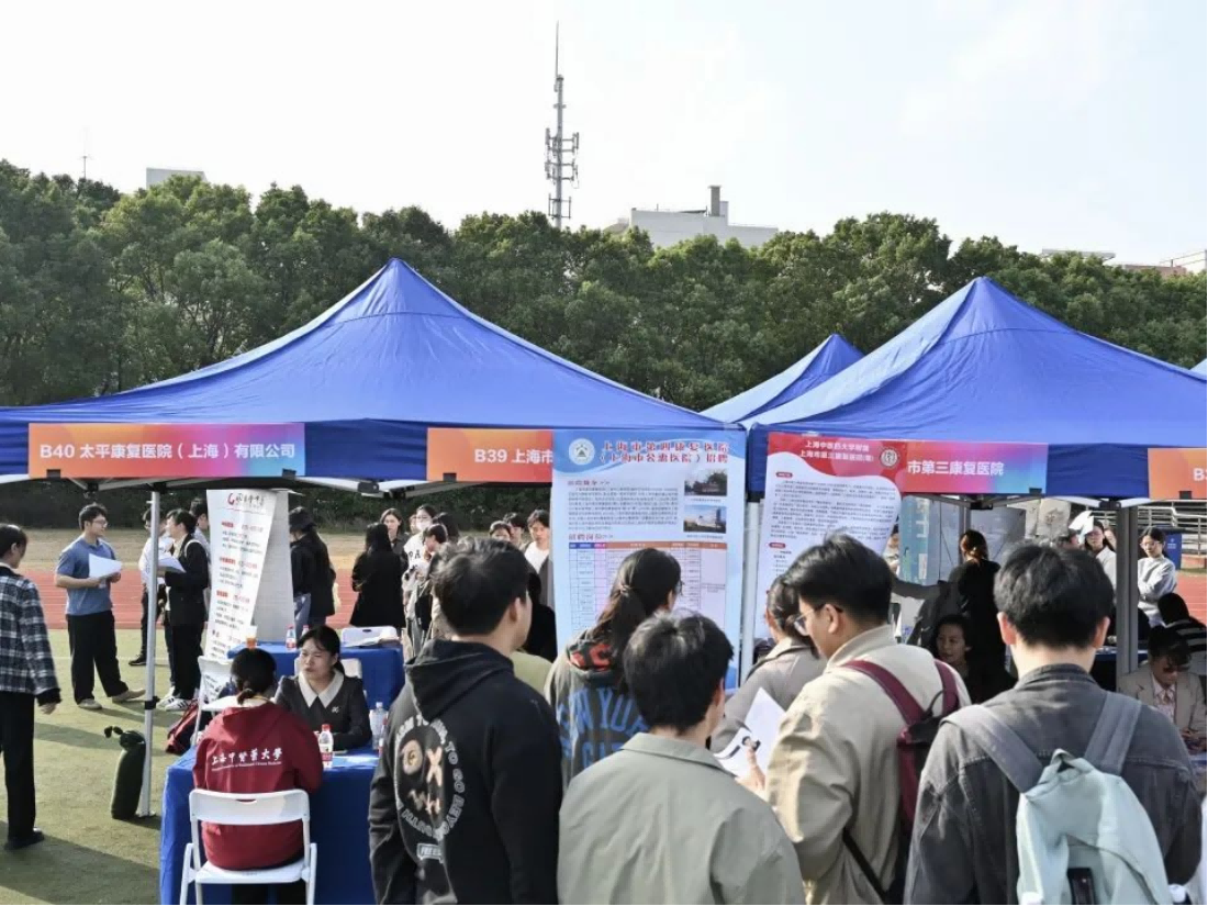 下午,2025届上海市高校毕业生招聘会医药专场在公司体育场举行。公司领导班子带领辅导员老师深入招聘会现场,与相关康复用人单位进行了深入交流,了解人才需求及招聘信息,积极推荐公司优秀毕业生,为应届毕业生拓宽就业市场。