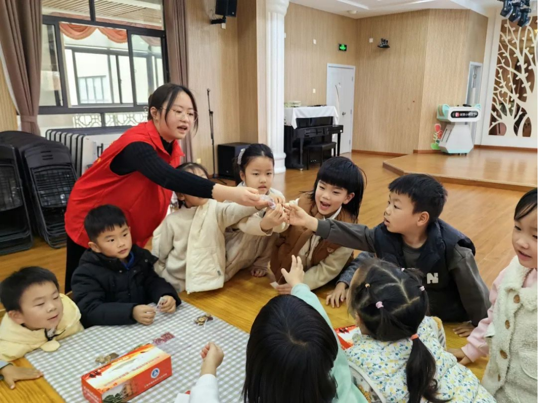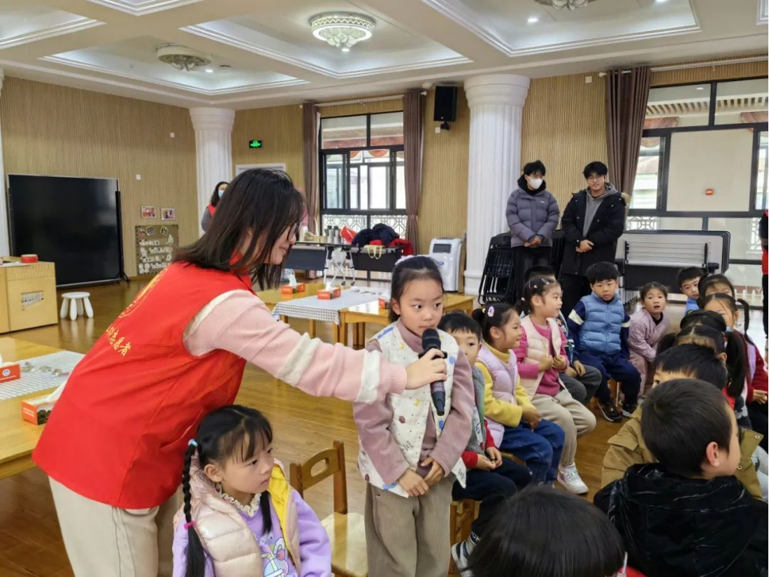“小朋友们,冬天到了,我们为什么要穿厚厚的衣服呀?” 志愿者王沥桦姐姐微笑着问道。“因为太冷啦!” 小朋友们像一群欢快的小鸟,纷纷举起小手抢答。在健康知识宣讲环节,王沥桦和乔枫灵同学巧妙地运用有奖问答的方式,激发了孩子们的好奇心和参与热情。孩子们在轻松愉快的氛围中,学到了实用的保健知识。