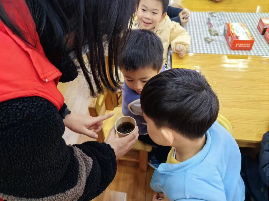 接着,志愿者们带领孩子们一起制作了简单的中药茶。他们将罗汉果、菊花、枸杞等放入茶壶中,用开水冲泡,瞬间,一股淡淡的清香弥漫开来。孩子们好奇地观察这些药茶。