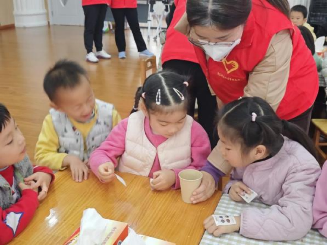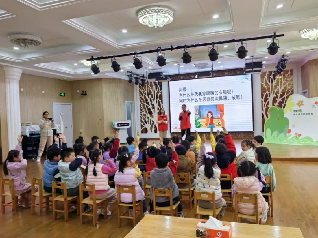 2024 年的寒冬,凛冽的北风挡不住关怀的脚步。2024年12月25日下午,上太阳成集团tyc122cc志愿服务队,在浦东新区惠南镇“中医药文化产业”推进工作小组支持下,与上海市浦东新区卫生公司的志愿者们共同来到浦东新区靖海之星幼儿园(桃源部),在公司党员教师金星带领下,为幼儿们带来了一场别开生面的“中医药文化进校园——幼儿冬季保健”科普活动。此次活动旨在让中医药文化的种子在儿童心田里萌发,增强幼儿健康意识,培养良好生活习惯,让孩子们在寒冷的季节里也能健康快乐地成长。