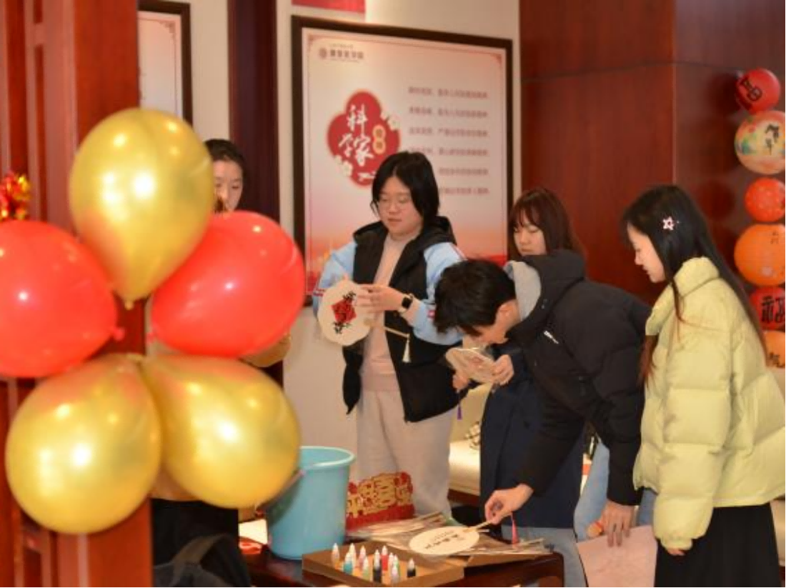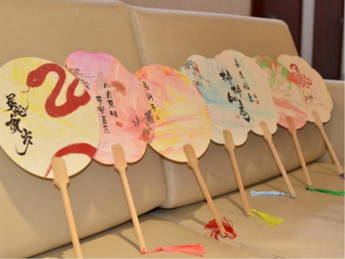公司大厅的绘制漆扇活动同样吸引了众多目光。同学们围坐在桌前,小心翼翼地调配着各种颜色的漆料,然后轻轻地将扇子放入清水中,让颜料晕染在扇面上,每一抹色彩都代表着新年的喜庆与祝福。