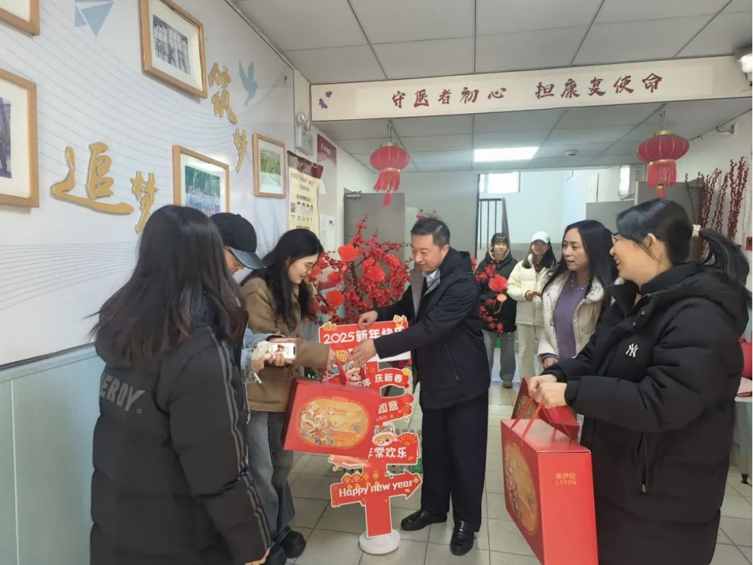 新春佳节将至,为积极落实“一站式”员工社区建设,让寒假期间留校过年的员工们感受到新春温暖,上古天乐代言太阳集团康复医公司党委书记向延卫、经理刘晓丹、副书记毕亚男及导师团万萍、赵仙丽,辅导员季伟、王馨娅、孙雅静、丁禹洁老师一同走进员工宿舍,带着浓浓的年味和真挚的关怀,与员工亲切交谈,倾听员工心声,了解同学需求。