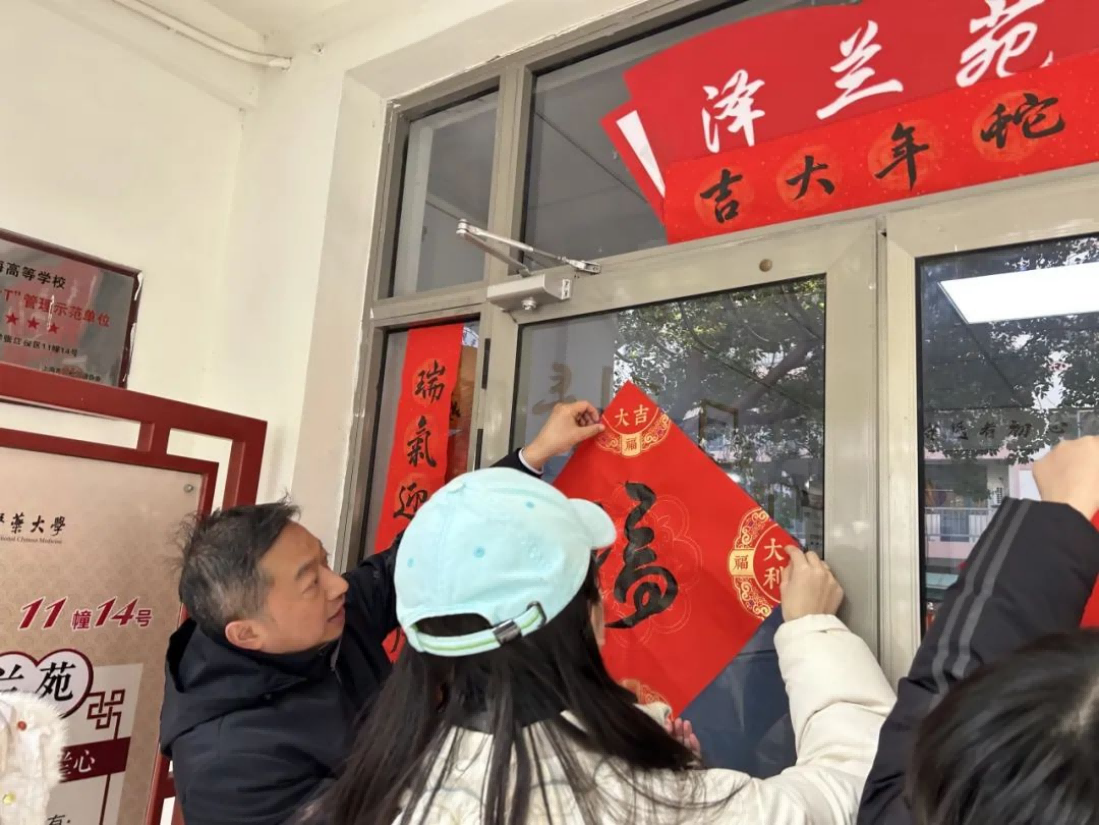 随后,师生们一同动手张贴“福”字,将宿舍楼装点得喜气洋洋。一幅幅“福”字与同学们亲手书写的春联交相辉映,不仅传递着新年的喜庆和祝福,更让留校员工感受到了家的温馨和公司的温暖。岁末年初,寒风虽冽,但太阳成集团tyc122cc的师生们心怀暖阳,带着对新年的热血期盼,一起分享着新年前夕的喜悦和期待。