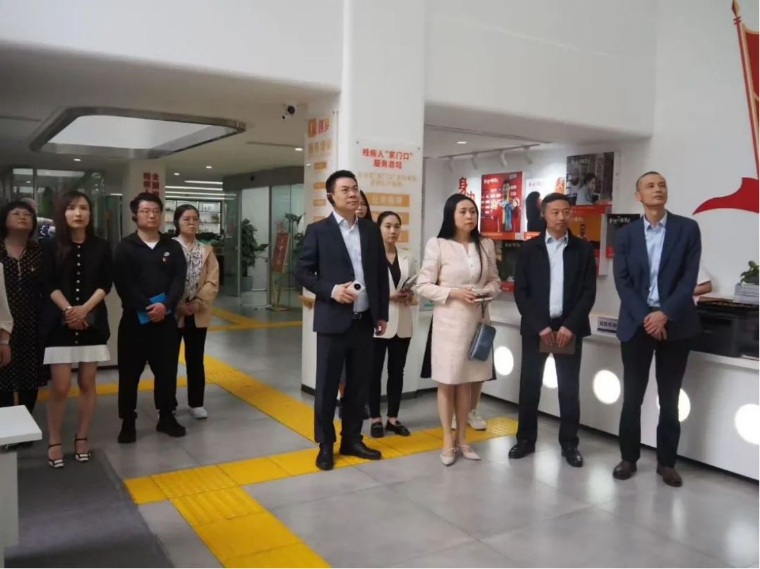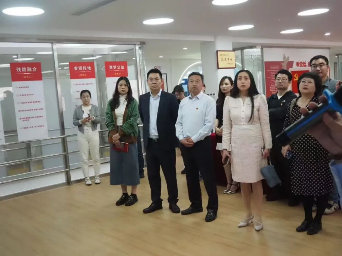 2025年4月17日,康复医公司党委书记向延卫、副书记毕亚男、副经理汤康敏及10余名教职工赴浦东新区残疾人党群服务中心参观学习。浦东残联理事长祝宏标、副理事长朱燕连、办公室主任姚惠倩、康复科主任张越民出席本次活动。