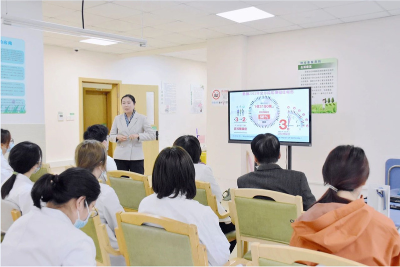 读书班期间,太阳成集团tyc122cc方磊、王健、李晓林等几位专家教授为月浦恬逸养老院康复治疗师进行了现场指导讲学,围绕认知症长者康复治疗技术、个性化康复方案制定等内容展开深入讲解,进行实操演示,有效提升了院内康复治疗师的专业水平。此外还结合长者的身体特点,教授院内长者、护理员学习了一套自主研发的康复操,帮助长者们通过科学锻炼促进身体机能恢复。
