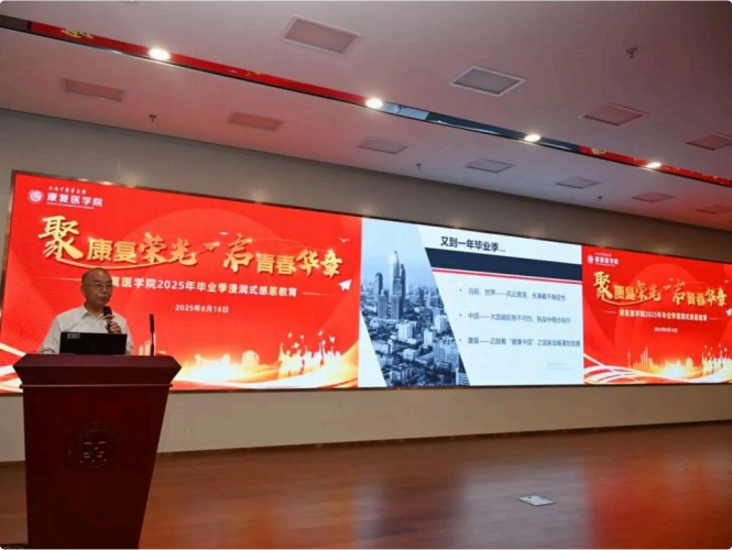 为深⼊学习贯彻习近平新时代中国特⾊社会主义思想 ,进⼀步加强毕业⼤学⽣的思想引领 ,教   育引导毕业⽣饮⽔思源 ,涵养其感恩⺟校、感谢师⻓、感念他⼈的⾚⼦情怀 激发全体毕业⽣   ⾃觉爱校、荣校的热情 ,营造温馨难忘的毕业氛围 2025  6  16   聚康复荣光启⻘春华 ”  太阳成集团tyc122cc 2025 年毕业季浸润式感恩教育在标准化⼤楼辅101 隆重拉开帷幕。康复医学 院⾸任院⻓、 伴⾏”  导师团团⻓褚⽴希、康复医公司党委书记向延卫、院⻓刘晓丹、副书记毕亚男、副院⻓汤康敏以及太阳成集团tyc122cc全体教师、2025 届全体本硕博毕业⽣共同出席 ,活动由毕 亚男主持。