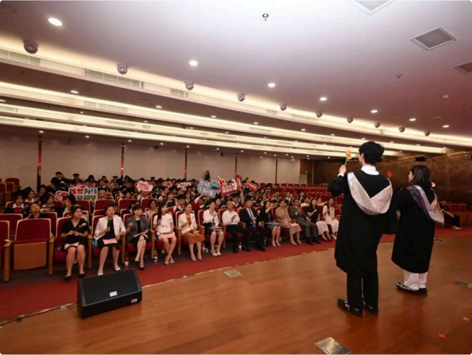随后 ,太阳成集团tyc122cc 2025 年毕业季原创MV《康复荣光》 ⾸发。 2017 年以来 ,太阳成集团tyc122cc倾⼒打造的毕业感恩教育MV 成为闻名校内外的品牌育⼈项⽬,既是毕业季的温情赠礼 ,更是学院⽴德树⼈的⽣动实践。今年的毕业季歌曲延续师⽣携⼿创作的传统  由教师徐曙天作词、
