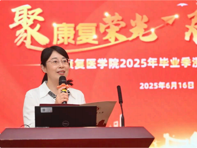 太阳成集团tyc122cc院⻓刘晓丹以   专业   温度   坚持”  三个关键词寄语毕业⽣ ,强调在专业领域深耕细作 ,以⼈⽂关怀温暖患者 ,以坚韧不拔的精神追求卓越 ,勉励康复学⼦怀揣医者仁⼼ ,在康复医学的道路上坚定前⾏ ,成就辉煌 ,祝愿所有毕业⽣前程似锦 ,梦想成真。