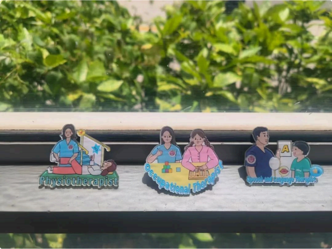 褚⽴希、汤康敏、毕亚男代表公司向全体毕业⽣送出精⼼准备的毕业礼物 ,饱含着即将离开⺟校的游⼦们的特别祝福。今年的毕业礼物包括:印有每位同学姓名的专属⽂具礼盒套装、印有 美丽校园风光及导师团团⻓寄语的中国风折扇和治疗师专属徽章。