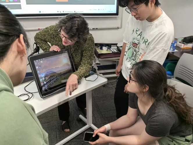 在全面了解了ACC后我们进入了最有意思的部分,亲身实践,同学们被分成了不同的组体验不同的辅助沟通器具,其中最让人印象深刻的就是一台可以通过眼神向外界进行交流的电子屏幕,为不同年龄的患者设置了不同的游戏和功能来帮助他们熟练掌握眼神追踪的交流技术,在教室的各个角落伴随着同学们的讨论和参与,这节十分有意思的课程也渐入尾声。