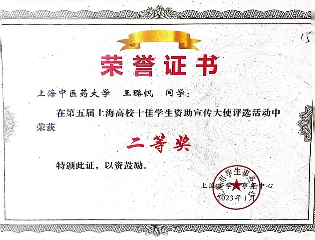 4.第五届上海高校十佳员工资助宣传大使二等奖